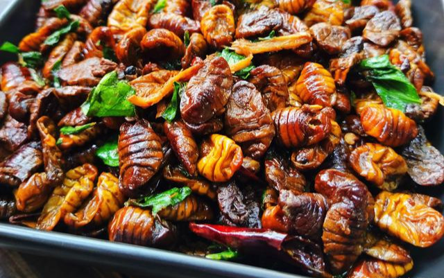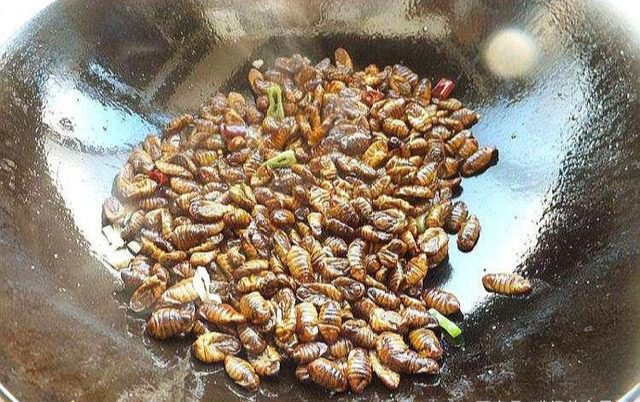 总结:蚕蛹这道小炒,做法简单,营养丰富,是最低廉的补品,可常食用,但不可一次性贪多,一次性摄入太多可能引发不适,尤其是小孩和老人、孕妇等抵抗力差的人,少食多餐才是正确的食用方法。另外,炒制时切忌一定要焯水,将蚕蛹弄熟,宁可炒制时间加长,也不要贪快贪嘴,避免引发身体不适。还有选蚕蛹时,尽量选择新鲜的,不买腐败变质的,毕竟是入口的食物,一定要注意。