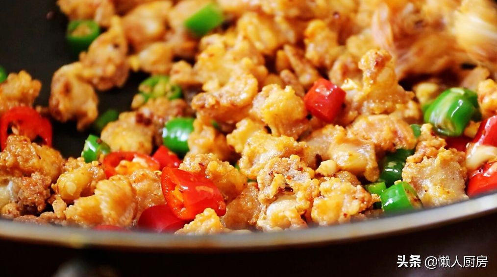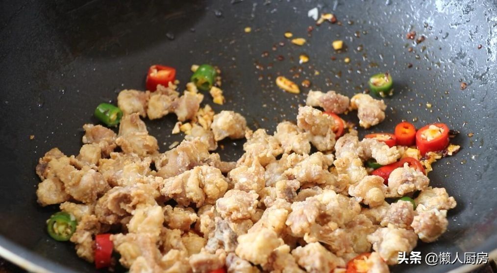 倒入炸好的鸡脆骨,翻炒均匀即可出锅。这道香酥鸡软骨就做好了,吃着又香又脆,太适合做下酒菜了。