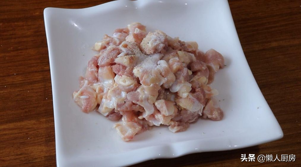 往鸡软骨中加一点料酒,适量的盐,一点白胡椒碎和鸡汁抓匀,把鸡软骨腌制一下。