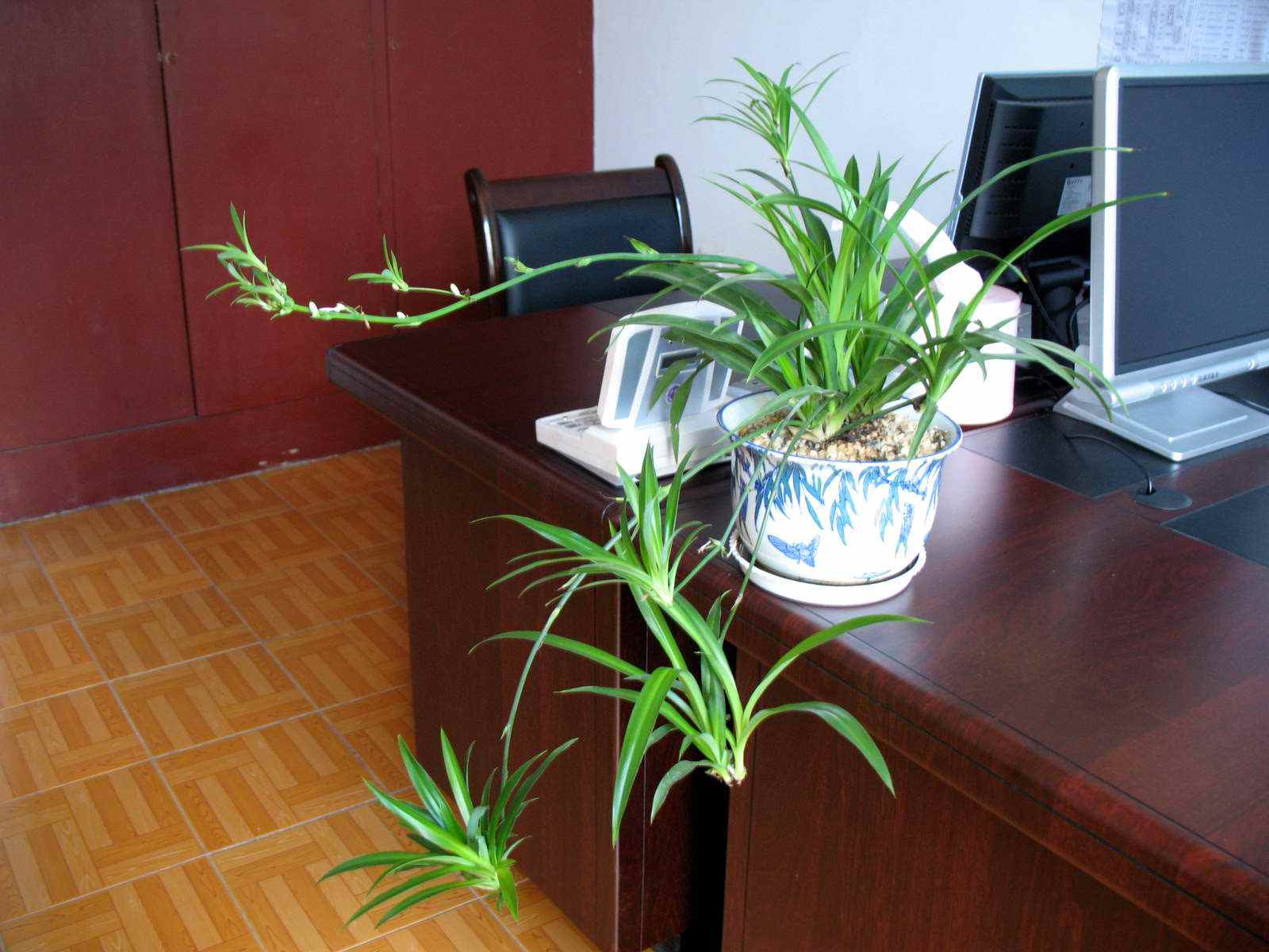 吊兰是比较喜欢水的,但是又要给它控水,吊兰的生长速度非常的快,可以说是惊人了,我们家养的吊兰,两年的时间吊兰的根系就能把花盆给长满了。在浇水上面给大家一个小的建议,那就是在夏天炎热的时候多浇水,冬天的时候,温度比较低,这时候就少浇水。
