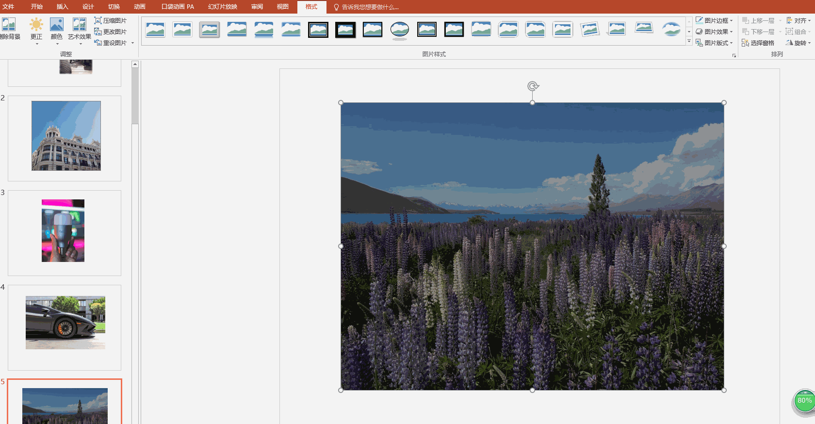 另外,PPT里面还有各种艺术效果可以让你添加,所以这个时候我们可以选择【格式】里面的效果,包括虚化等都有哦,总有一款适合你!