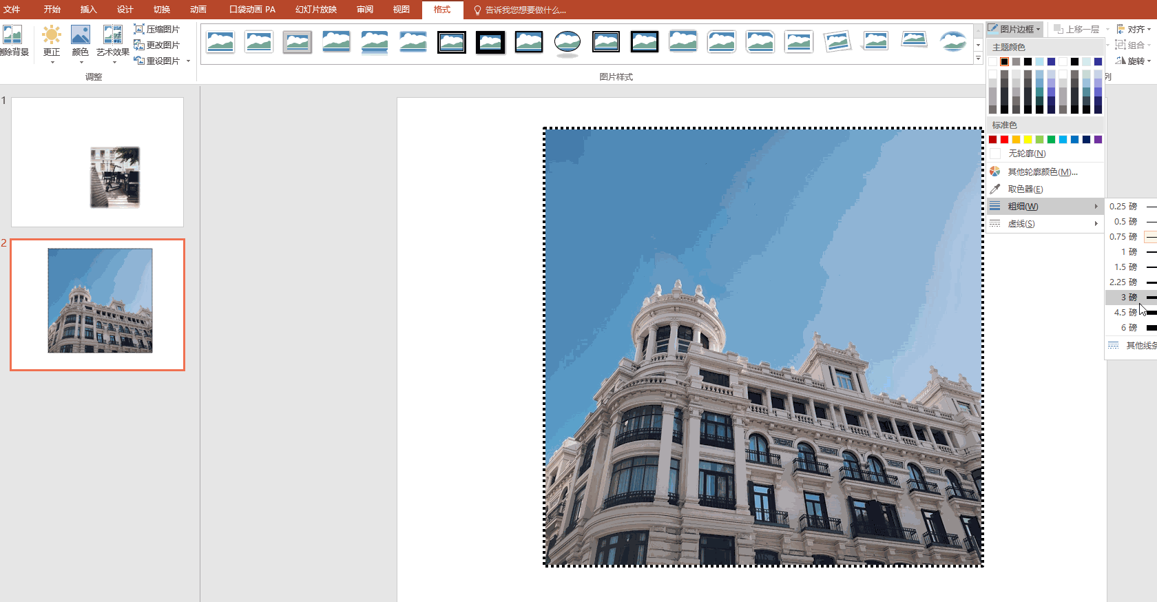 接下来,我们还可以给图片添加更加好看的边框,只要你在【格式】里面选择更加高大上的框,就可以一键完成添加啦,是不是特别方便呢!