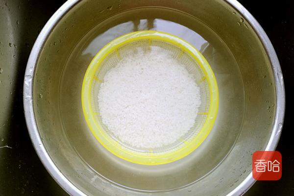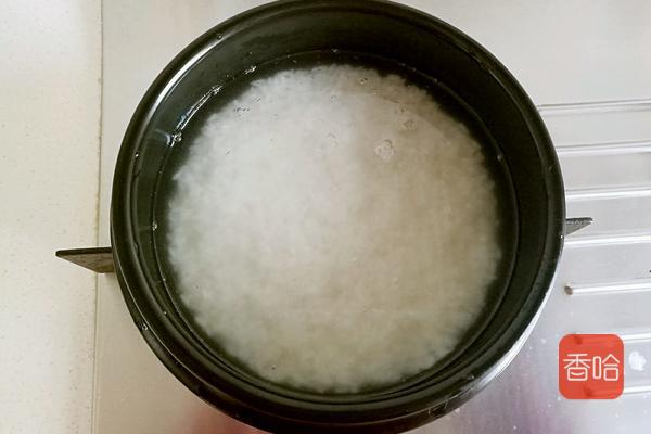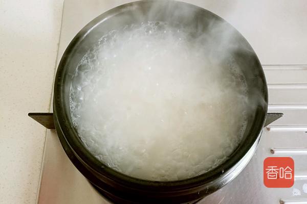 5.大米倒入砂锅中,加入高出米面1.5厘米左右的水。