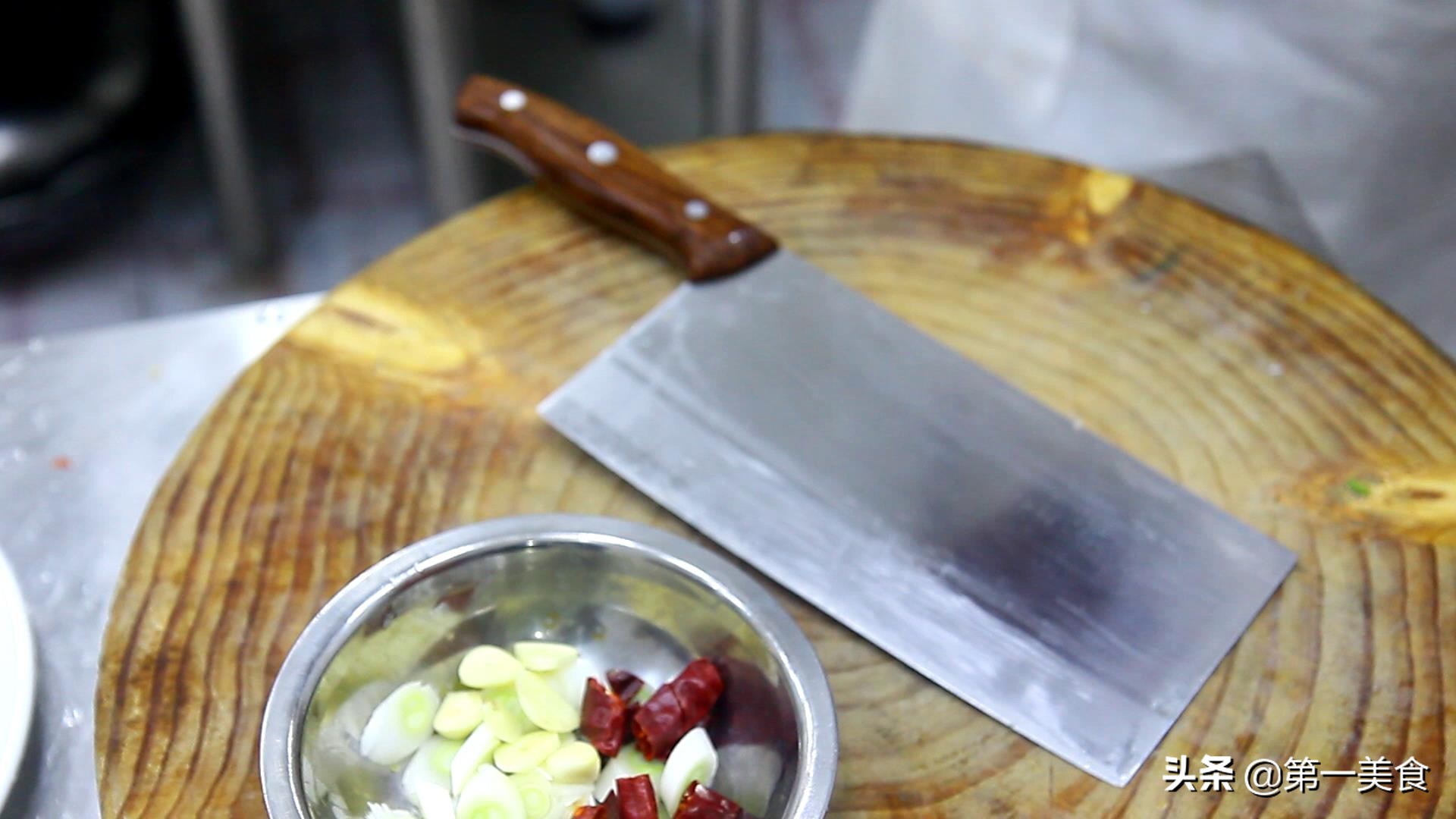 3.大葱白斜切成片,大蒜也切成片,加入一把红干椒。