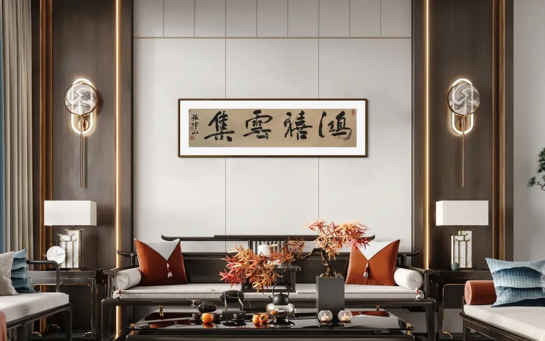 【鸿禧云集】,喜庆之事常驻吉庆之家,悬挂这幅长达31年连任五届中国书法家协会理事的张坤山老师书法作品在客厅,寓意吉祥美好,欢喜常在。