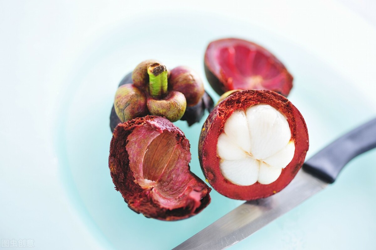 先去掉山竹的蒂,然后用刀将山竹放在桌上,沿着边缘用刀将山竹切开即可取出果肉。