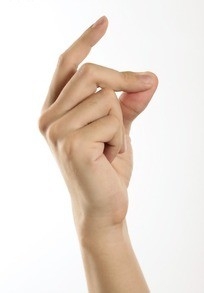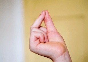 3中指用力打在无名指与大拇指的底部空隙,即我们所说的”打响指”.