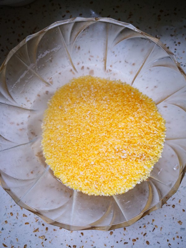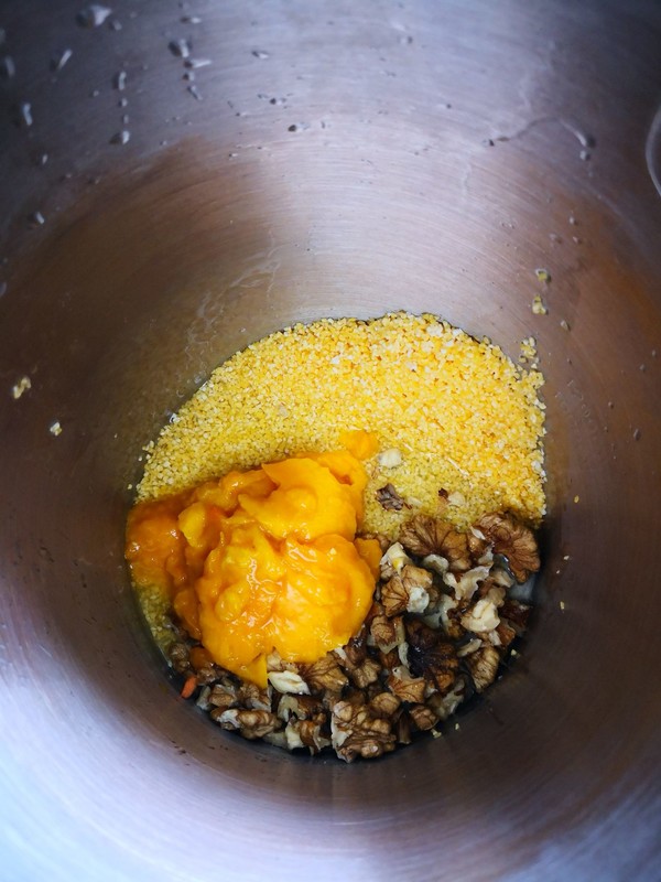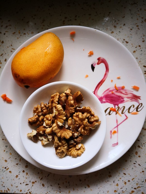 玉米糁(黄) 80克、芒果 一个、核桃 适量、水 适量