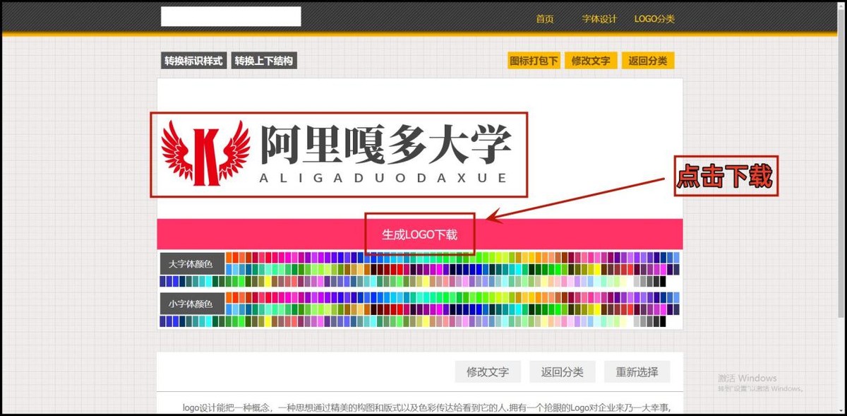 步骤二,logo生成后,还是需要挑选一个合适的logo作为校徽,大家自行进行选择。
