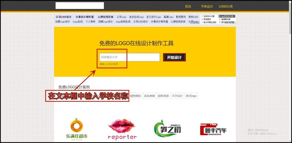 步骤一,打开搜索好的logo在线设计网页,我们直接就可以在文本框中输入学校的名称了,接着点击开始设计即可在线生成校徽。