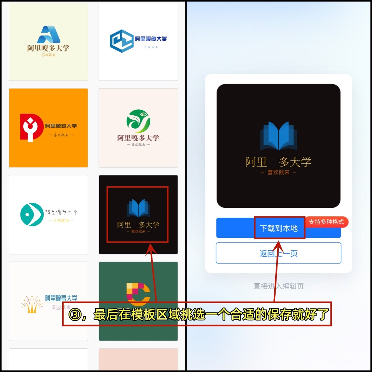 步骤三,最后app会为设计好的logo提供很多的模板,小伙伴们自己挑选一个喜欢的进行下载就可以了,是不是很简单呢?
