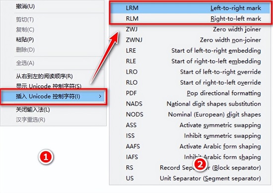 接下来的一步很重要,首先清除原有的文件夹名字,然后右键单击,选中右键菜单中的“插入Unicode控制字符”,最后选择二级菜单中的“LRM”或“RLM”。此时文件夹的名字也消失不见了。