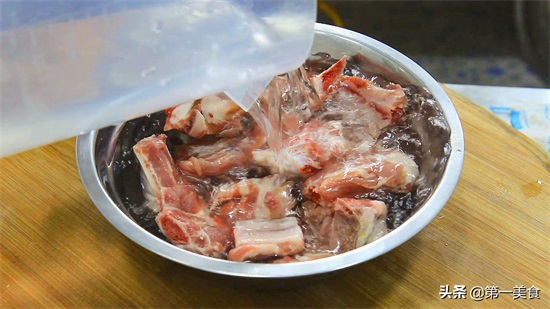 1.猪排骨一块,剁成块,放入盆中加入清水浸泡。