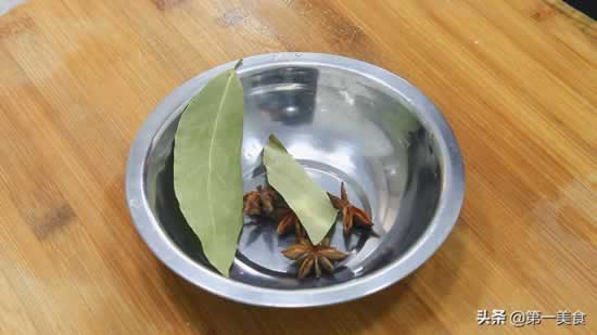 1.八角4个,香叶两片,放入准备好的小盆中。