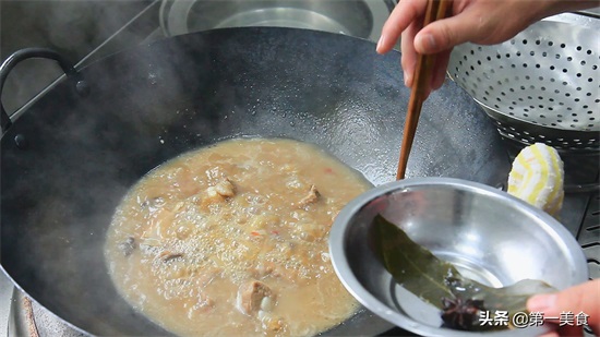 4.中间五十分钟的时候,已经煮出香味,挑出大葱,姜片和大料。