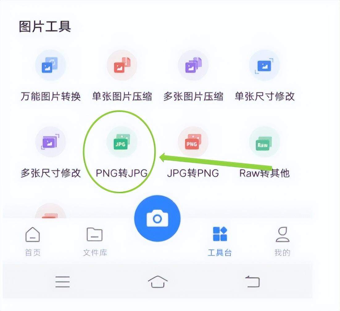 步骤二,点击打开已经存储在手机上的转换工具,在工具的主操作页面上有很多的功能选项,只要点击用来格式转换的【万能图片转换】按钮就可以了,点击完后,工具就会自动出现一个用来完成格式转换的操作页面。