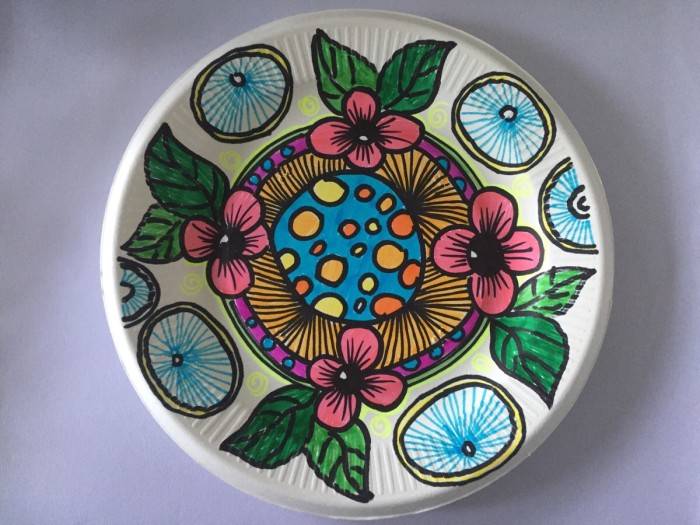 我迫不及待的拿起画笔在盘子上画起来我在实践中发现,要用这种特殊颜料上色,需要控制好水分我这个外行人简直忙得团团转最后,我发现,想要画好盘子上的画,就要熟练运用各种工具在我的一番努力之下,一副盘子上的;准备一张纸和一支彩笔用蓝笔在纸上画一个圆形,表示盘子的边缘在盘子中间,再画一个小圆,表示盘子中间凹陷的地方用笔在两个圆之间的部分画许多3,表示盘子四周的花纹最后,用蓝笔将整个盘子涂一层浅浅的蓝色。