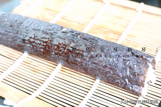 6.利用寿司帘卷起,卷紧,等一会定型。