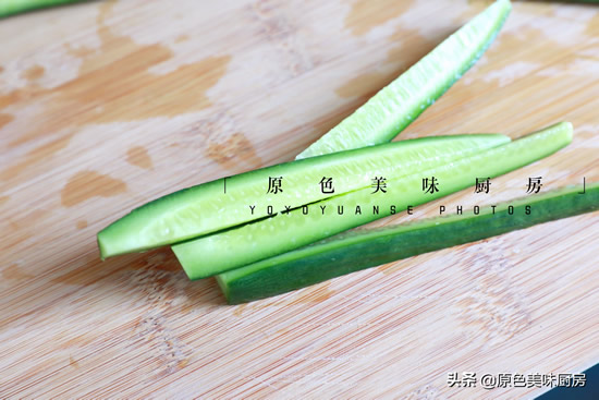 2.黄瓜清洗干净,对半切开,再对半切。均切成均等的8份,制作的时候用了2小份。。