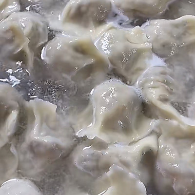 10、锅中将水烧开,放入少许盐,放入饺子,用勺子沿着锅底轻轻推动,避免饺子入锅后沾底,盖上锅盖,等到再次开锅后,揭开锅盖,用勺子沿着锅边往中间推饺子,煮4-5分钟就可以装盘了~