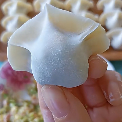 9、包入适量的饺子馅封紧口;