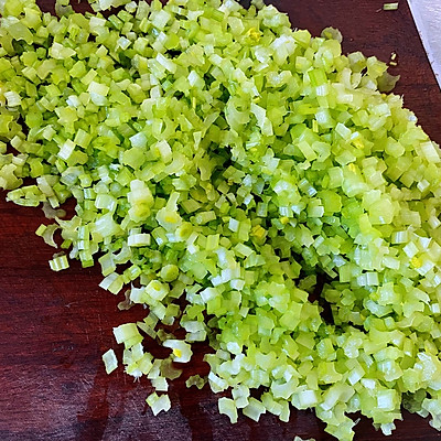 5、西芹切碎,喜欢软的就先将西芹焯一下水再切,喜欢脆一些的就直接切;