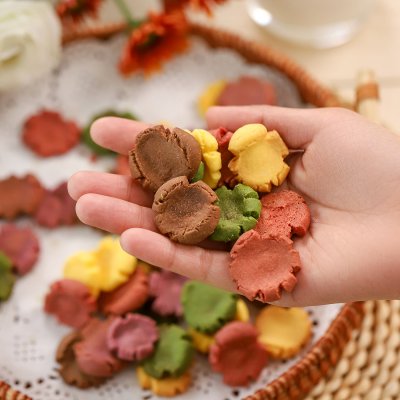 和普通玛格丽特饼干相比,五彩的颜色更加有食欲,迷你的尺寸不仅烤制的时间减短了,用光波炉烤出来的效果也会更好~