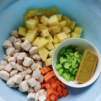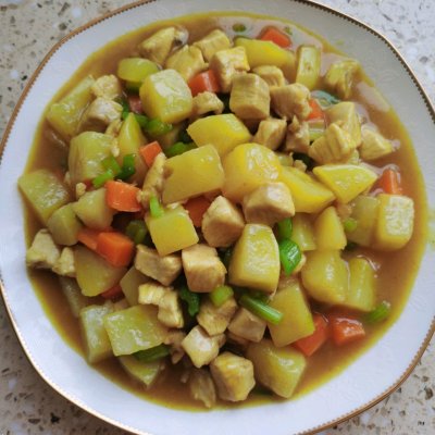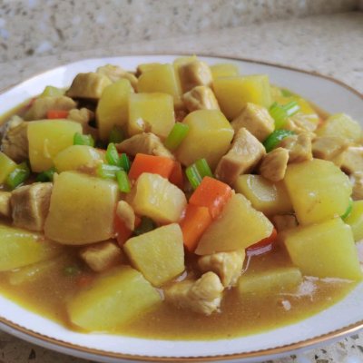 鸡脯肉 一块 土豆 一个 胡萝卜 三分之一个 绿色搭配 少许 咖喱 四分之一块