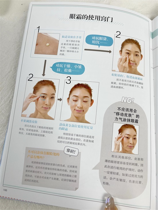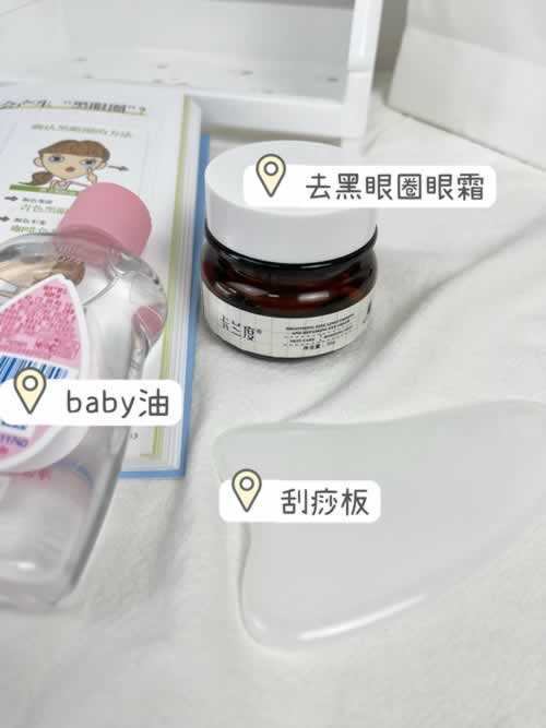 3.洗净脸上的油,涂去黒眼圈的眼霜点图打圈按摩至吸收