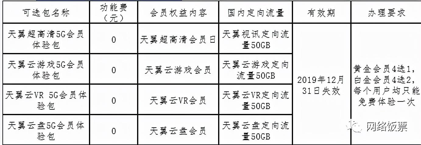 生态权益包含爱奇艺、腾讯视频等;应用免费体验包含天翼云游戏、天翼云VR等。