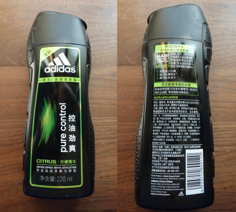 阿迪不愧是运动品牌,气味充满了男性荷尔蒙的香味,可以说是有点刺鼻的重香,洗发水质地也和前文说的那两种差不多。