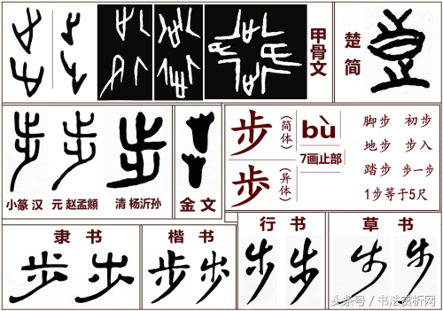一日一字一图,【步 bù】字的正确五体字形及词解: