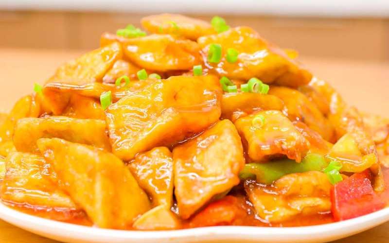 锅里烧油,油热至5成热时放入茄子,炸至金黄色后捞出控油;然后倒入青红椒圈炸20秒捞出,然后捞出控油。