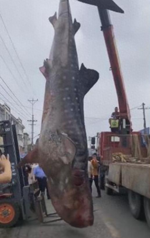 图注:网传的江苏吕四新港捕捞4吨鲨鱼