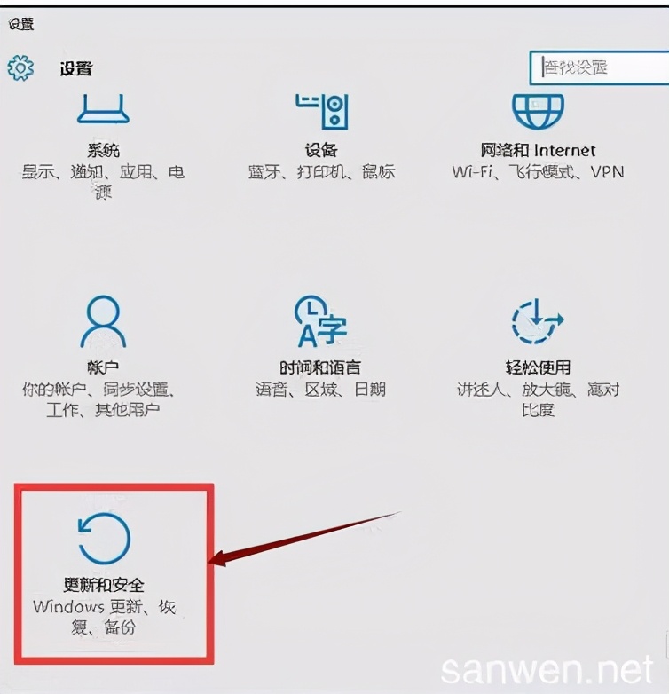 第二步:设置界面打开后找到更新和安全,点击打开。