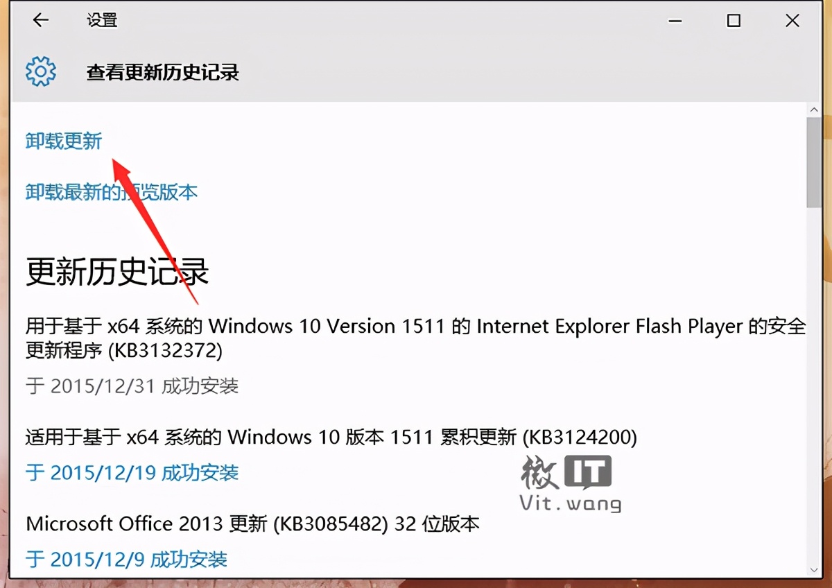 第四步:点击“卸载更新”