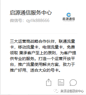 微信公众号 启源通信服务中心-号卡宝藏-免费专区