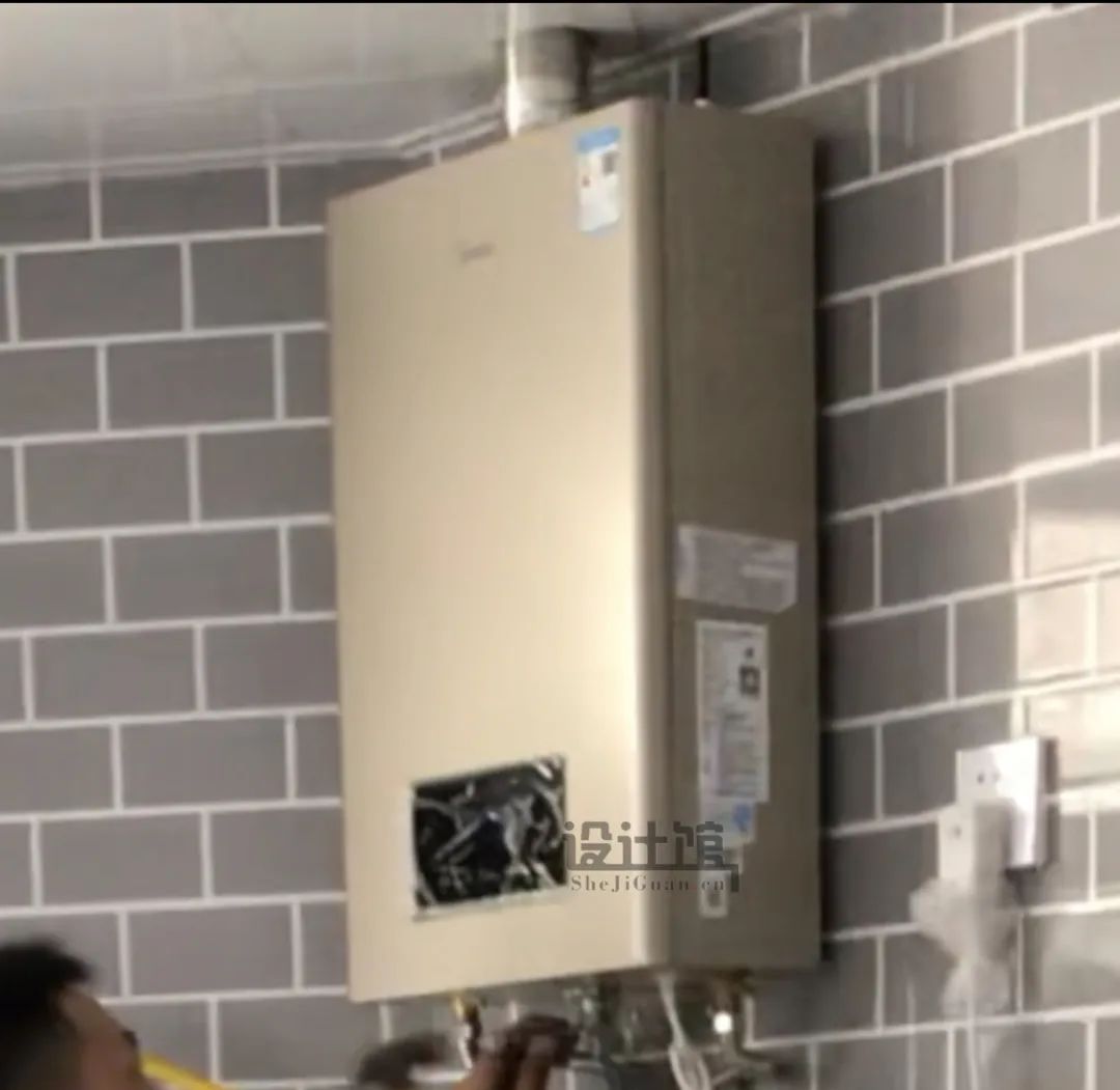 热水器的排气管可以在铝扣板天花上方出去,这样整体空间感会更加美观。