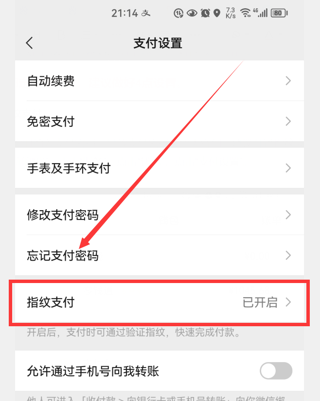 然后点击“指纹支付”,进入“指纹支付”界面。。