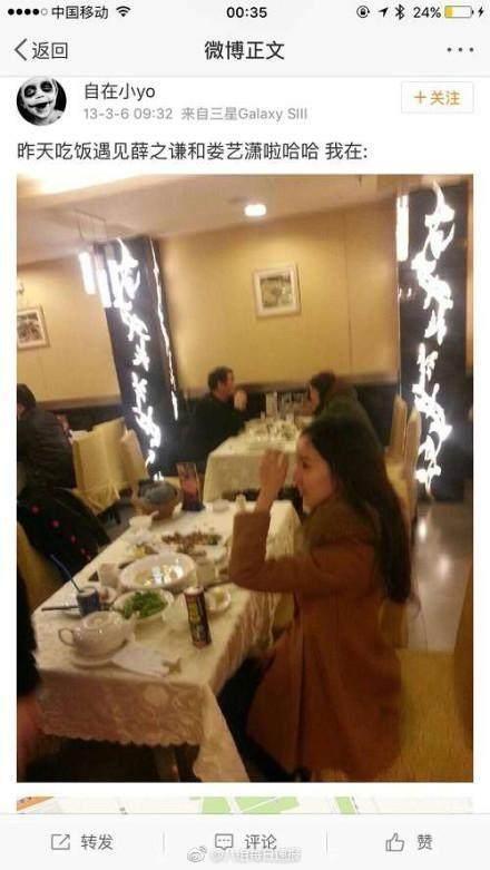 有网友贴出,薛之谦和娄艺潇在餐厅约会13年!