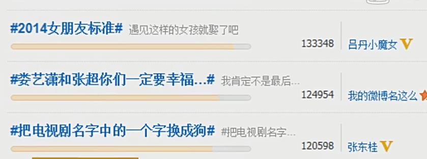 2014年,微博上空降了一个热门话题#娄艺潇和张超,你一定很开心#