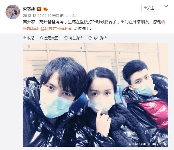 说起韩东君,娄艺潇2013年在微博上感叹,张超和韩东君陪着他出去靠朋友。