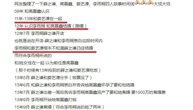 随后,根据网络名人的爆料 网友列出了李雨桐列出的信息娄艺潇薛之谦恋情的具体时间。