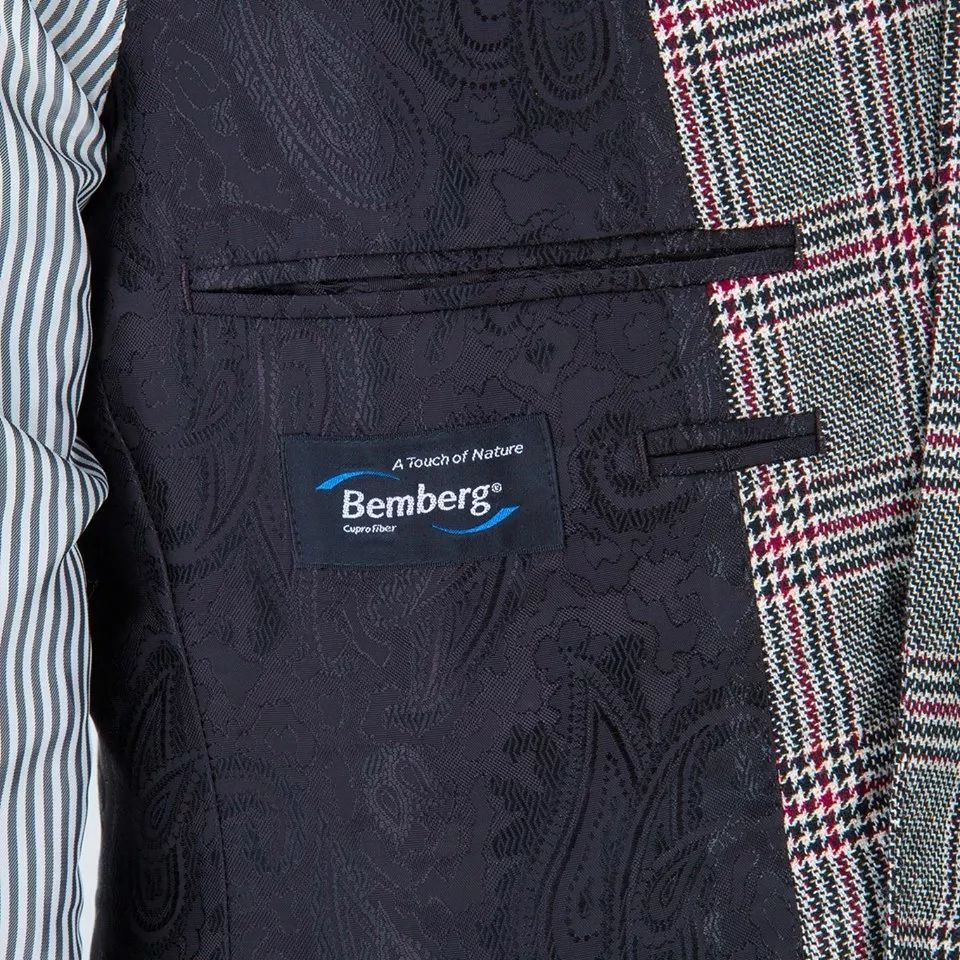 这种材质有近乎纯天然面料的质感,表面光滑,手感柔软,采用 Bemberg 里布的西服上衣穿脱起来很方便,而且不会因静电牵扯到内搭的棉衬衫。