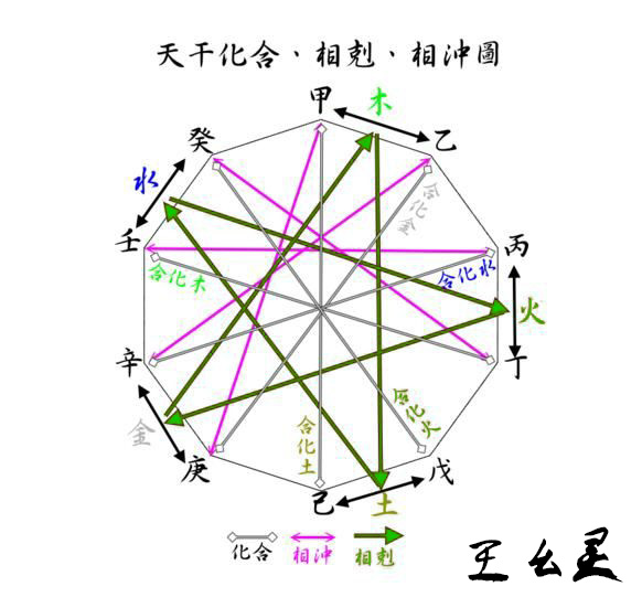 因此,甲是阳木,乙是阴木,丙是阳火,丁是阴火,戊是阳土,己是阴土,庚是阳金,辛是阴金,壬是阳水,癸是阴水。