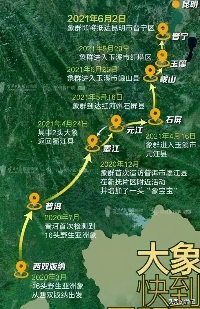 但光是这次迁徙已经足够稀奇,据说亚洲象这么长距离的北迁,是第一次。