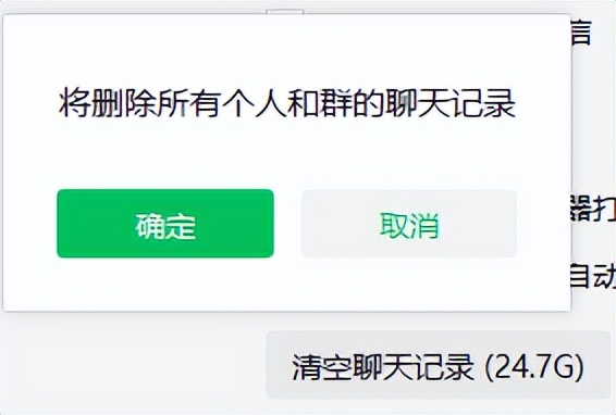 如果直接点击「清空聊天记录」,爽是爽了,但所有个人和群聊的记录都会消失。