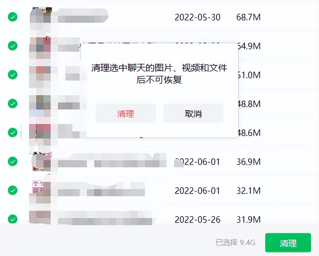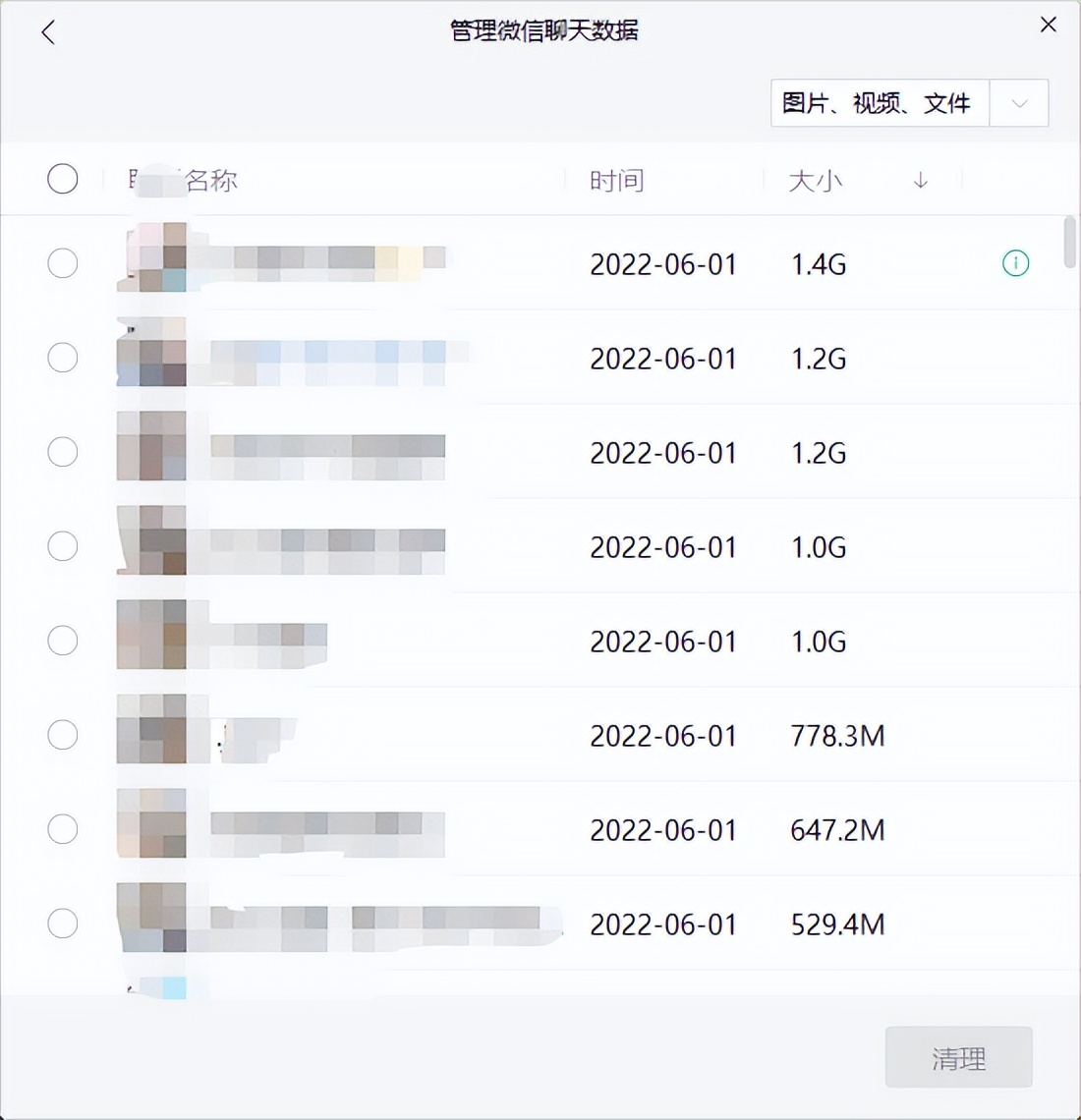 意思是说,清理掉这几个G后,回头再看那些对话框,文字聊天记录还在的,就是图片、视频和文件不能再查看详情了。