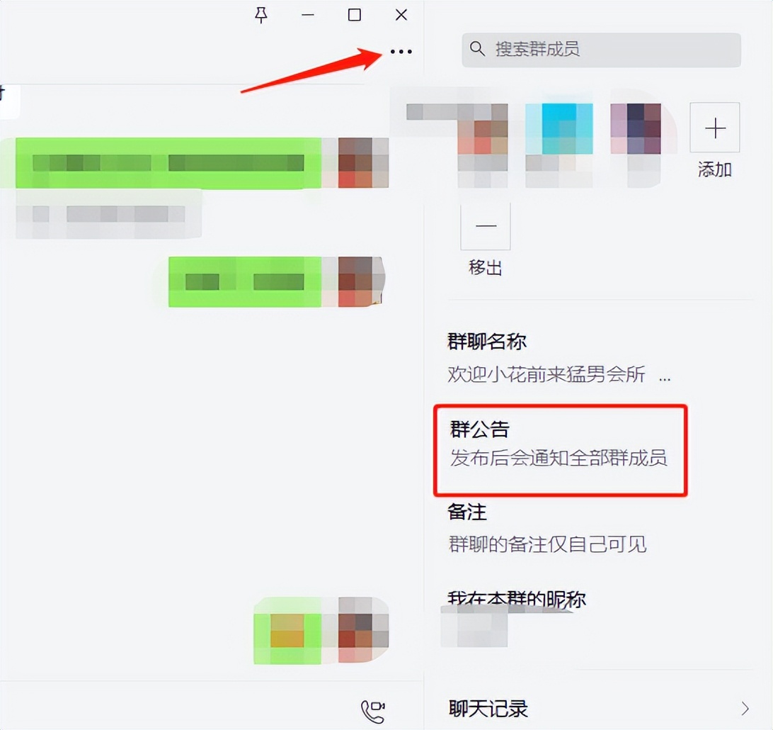 电脑版微信还细化了群聊另一个功能,群公告编辑。