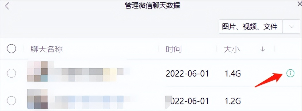 点进去一看,每个聊天对话框所占的内存,都按照从大到小顺序排出来。